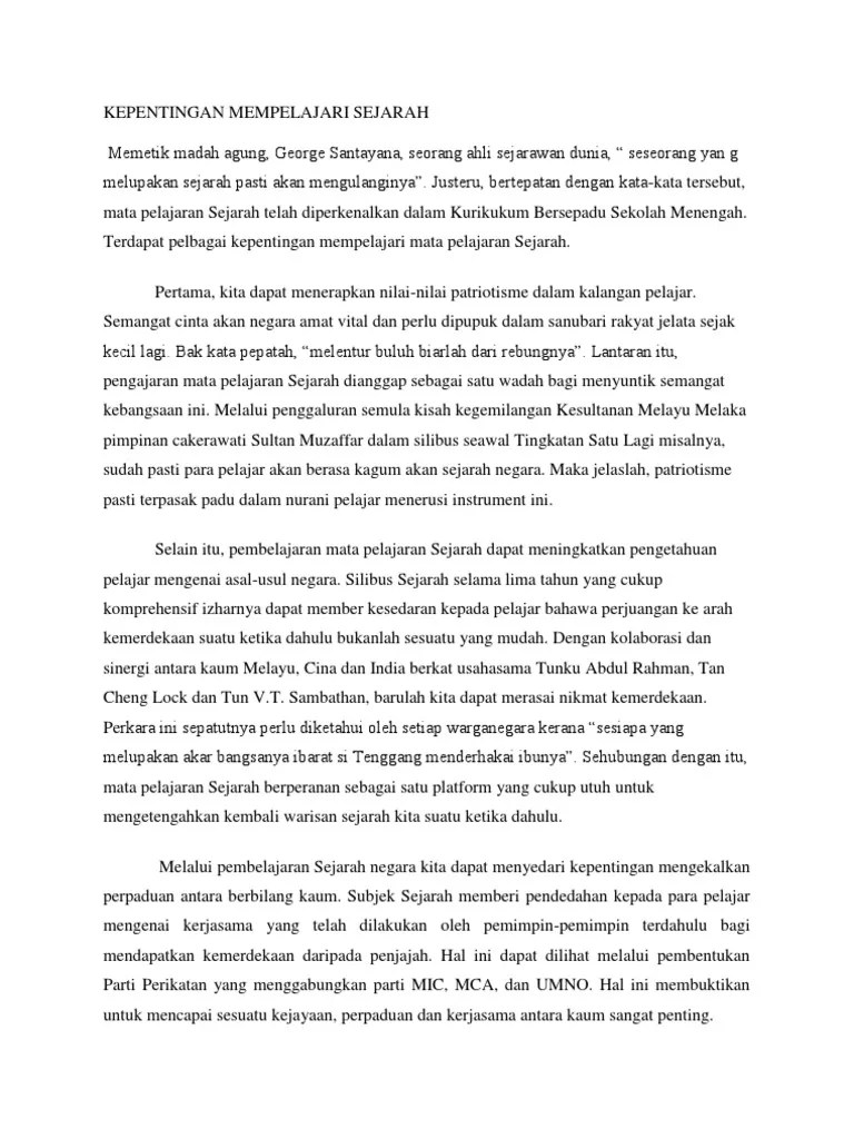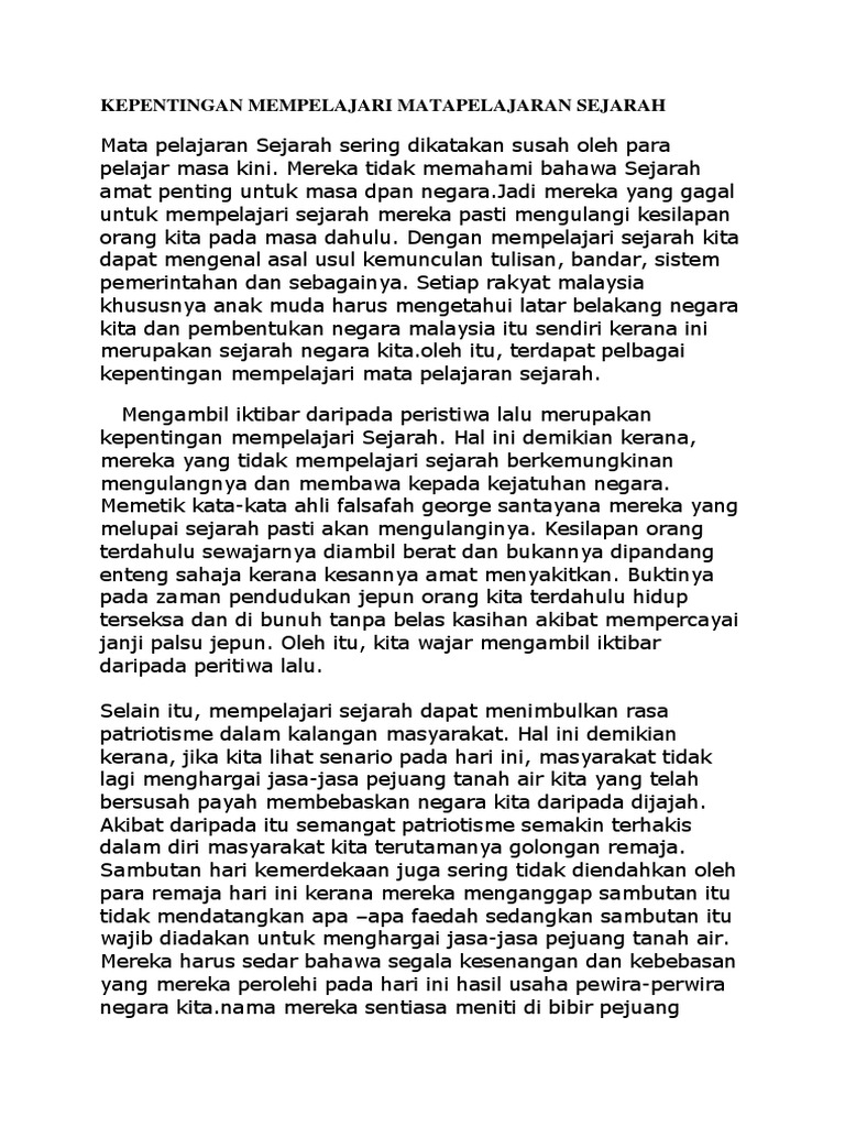 Kepentingan Mata Pelajaran Sejarah Karangan Stpm