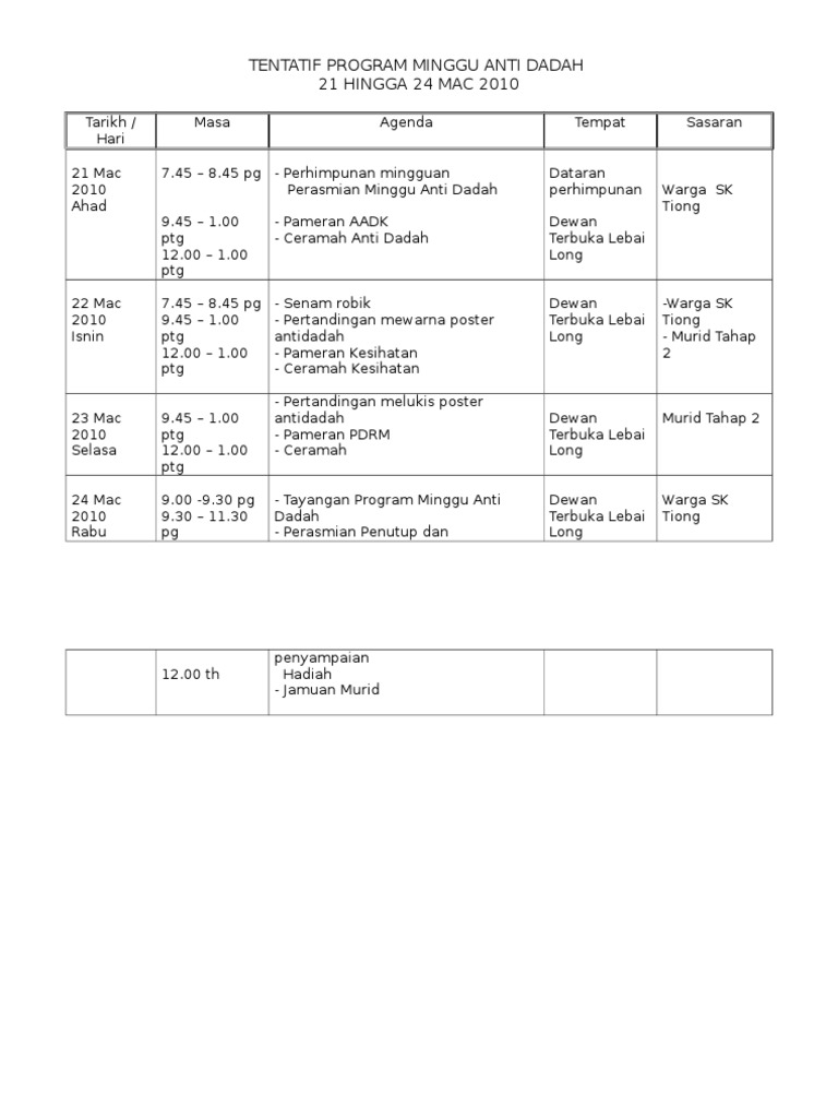Tentatif Program Aktiviti Minggu Antidadah